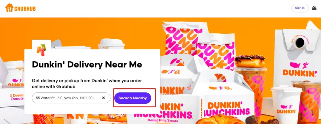- On the delivery service website, enter your address to search and click on “Search Nearby.”